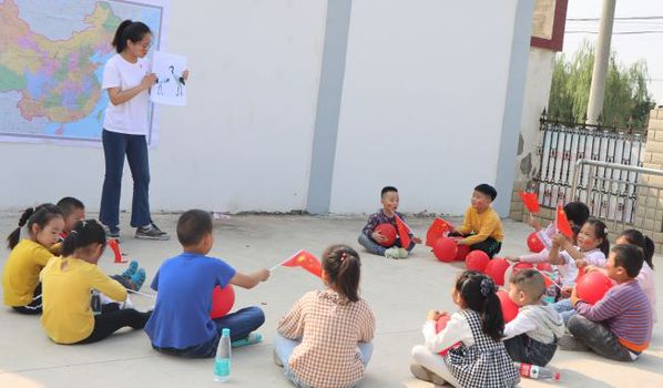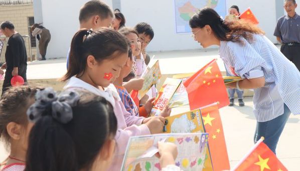 与此同时,村委会法治大舞台充满了欢声笑语,党员师生和小朋友一起为祖国母亲过生日,综合活动《我爱我的祖国》活动现场洋溢着喜庆的节日氛围,在欢快的游戏中,孩子们认识国旗、首都,理解国庆节的含义,认识藏族、蒙古族、维吾尔族等少数民族,感受祖国的伟大。孩子们挥舞着国旗,和党员师生齐声高唱《歌唱祖国》《我爱北京天安门》 ,每个孩子的脸上都洋溢着幸福的笑容。