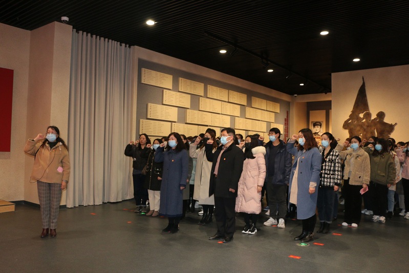 会后,全体师生党员赴新四军纪念馆开展“学百年党史,筑牢信仰之基;守教育初心,提升育人之能”主题党日活动。行走在展板与纪念品之间,聆听着讲解员充满深情的讲解,大家仿佛又回到了炮火纷飞的年代、耳边又响起冲锋的号角声。参观结束后,全体师生党员重温了入党誓词,大家铿锵有力的誓言在向先烈们庄严承诺,我们不会忘却他们的丰功伟绩,将继承他们意志和精神,树牢“四个意识”,坚定“四个自信”,坚决做到“两个维护”,为实现第二个百年奋斗目标而努力奋斗。