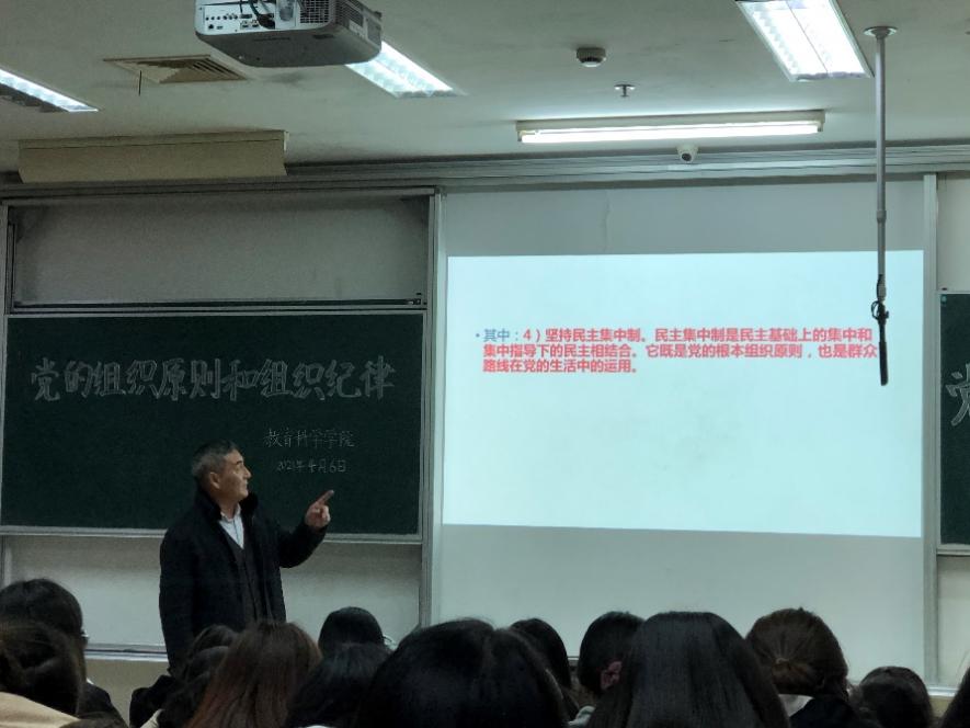 本次党课培训的主题为党的组织原则和组织纪律。培训伊始,许友根教授亲切地与同学们交流,以老党员的身份强调了党员的基本要求。随后,许教授根据自身经历与理解,带领同学们学习了党的组织原则和党的组织纪律,着重强调要坚持民主集中制、党的纪律六个方面以及五种党的纪律处分。许教授讲课过程生动有趣,党员须懂规矩和坚守自我底线这一点给同学们留下了深刻印象。最后,许教授对积极分子寄语厚望,希望同学们都能做一位有信仰、有原则、有敬畏之心的人,继承共产党人的优良品质,为建设祖国贡献自己的青春力量。