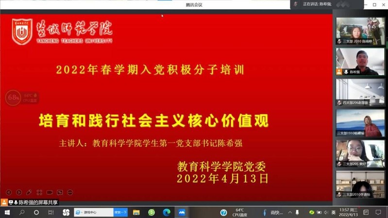 2022年4月13日下午2:00,公司开展了入党积极分子线上第五次党课培训,beats365唯一官网入口官网第一党支部书记陈希强老师担任本次主讲老师,beats365唯一官网入口官网2022年春学期入党积极分子参与了本次活动。