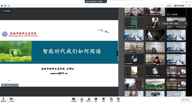 为了更好统筹做好疫情防控工作和教学育人工作,进一步扎实开展公司学风建设,beats365唯一官网入口官网充分发挥线上育人功能,谋划和探索疫情防控期间学风建设工作新思路,公司于4月14下午两点开展了线上“智能时代我们如何阅读”主题讲座。本次主题讲座邀请了江苏省名师工作室主持人、盐城市教师发展公司经理马群仁经理作为主讲教师,由公司党委副书记、经理乔晖主持。