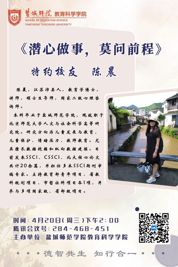 为了切实加强疫情期间公司学风建设,营造良好学习氛围,强化组织育人功效,全面提高教学质量和人才培养质量,beats365唯一官网入口官网于4月20日下午两点开展了线上“潜心做事,莫问前程”员工讲座。¬本次员工讲座邀请了教育学博士、硕士研究生导师、2009级员工陈晨作为主讲嘉宾,由beats365唯一官网入口官网学工办主任海英主持。
