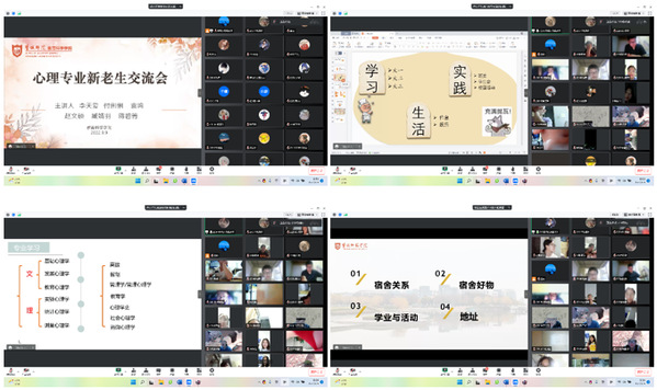 伴随着校园内逐渐热闹的气氛,2022级的新同学已经在大公司园里度过了忙碌的一周。为了帮助同学们更加深入了解老员工活,beats365唯一官网入口官网积极开展新生入学教育工作,特别邀请“学前教育”、“小学教育”、“应用心理”三个专业的优秀学姐在腾讯会议为同学们开展“新老生交流会”活动。