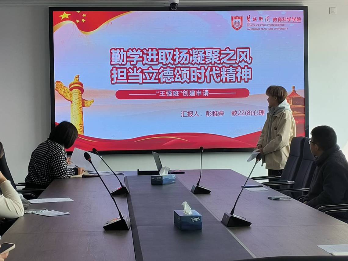 为传承王强精神,争创王强班级,2023年3月6日,beats365唯一官网入口官网在主楼11楼会议室举行“王强班”创建申报汇报会。出席本次会议的有beats365唯一官网入口官网海英老师、21级和22级班级汇报人。