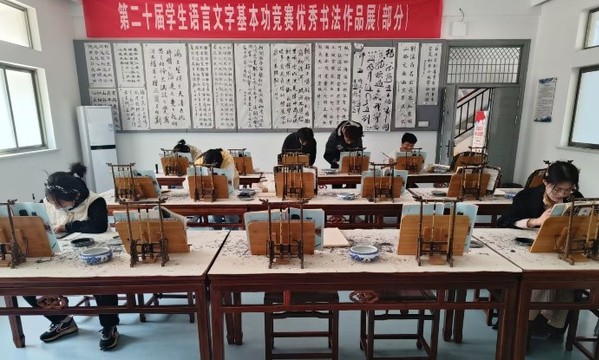 大赛伊始,每位同学斗志昂扬,他们规范的握笔姿势是最靓丽的风景,同学们明确自己的写字风格,细心、耐心地对待此次比赛。只见同学们凝神运笔,挥毫泼墨,认真投入其中,一撇一捺,规范认真。他们丹青妙手,用一撇一捺涂抹风雅,用一横一竖抒写诗意,不管是楷书,还是隶书与行书,在他们的笔下,都呼之欲出,唯美隽永。他们满载激情,使丹青精彩凝于瞬间;他们盛满芬芳,使笔墨豪情洒满校园;他们浸润欢畅,把中华文化融入心房!流畅的线条、律动的笔触,一幅幅优秀的书法作品就这样跃然纸上。最后,工作人员将同学们的参赛作品收齐。至此,本次比赛圆满结束。