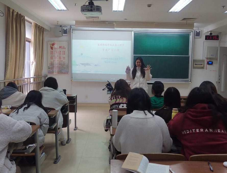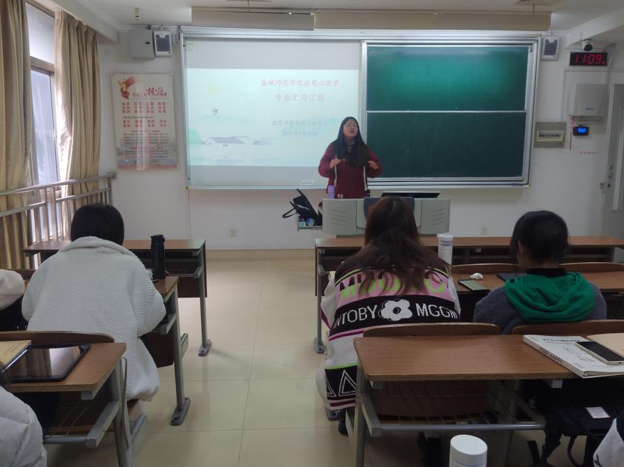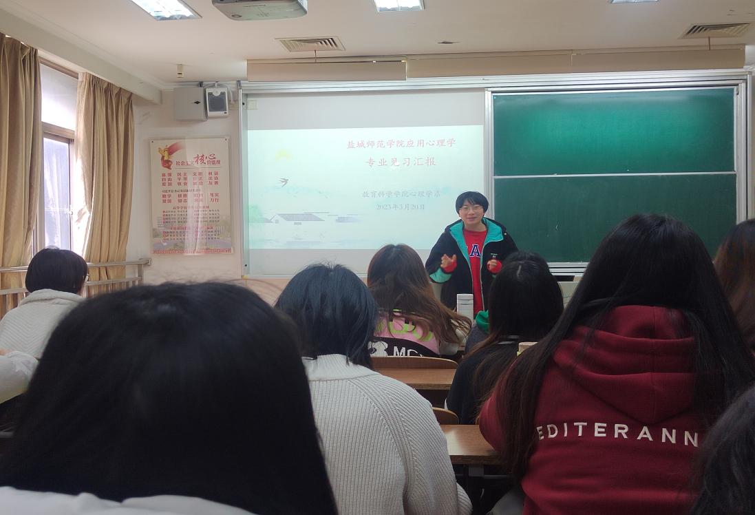 2023年3月20日上午,beats365唯一官网入口官网心理学系在主楼A201举行21级应用心理学专业见习汇报会,针对3月14日在盐城小学开展的室外团体辅导见习活动进行汇报,系主任厉飞飞主持本次活动,教21(8)心理班全体员工参加了本次汇报会。