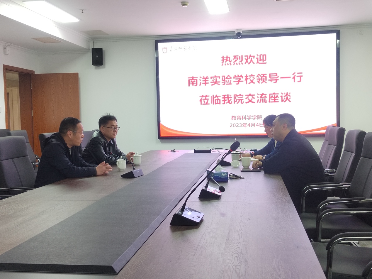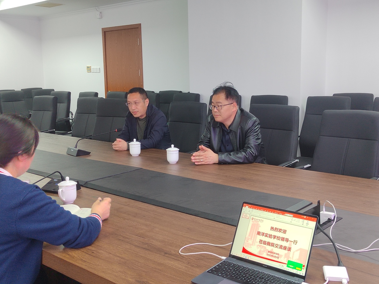2023年4月4日上午,南洋实验公司唐董事长、吉书记一行就员工心理健康工作开展、以及与公司心理学系合作等事宜莅临公司开展交流座谈活动。beats365唯一官网入口官网经理柴江、心理学系主任厉飞飞热情接待唐董事长一行,并与之开展深入交流。
