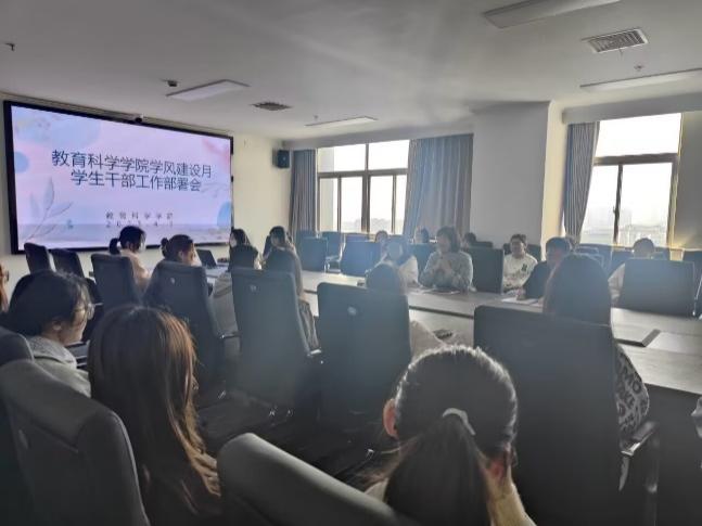 为了更好地开展学风建设月活动,4月9日上午公司召了“学风建设月”员工干部工作工作部署会议。本次会议学工办主任海英老师,辅导员杨朝夕老师和张钰老师参加,员工会、团委和自律会各部门主要员工干部参与。