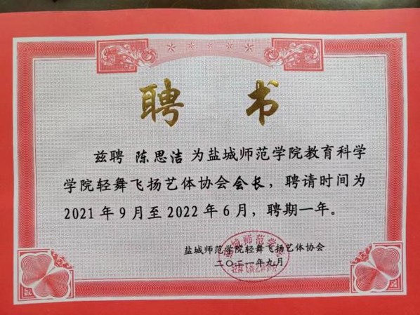 陈思洁,beats365唯一官网入口官网学前教育专业2019级员工。中共党员,现担任教19(4)学前SX班班长,曾担任轻舞飞扬艺体协会会长,在第十一届江苏省师范生教学基本功大赛获得二等奖。