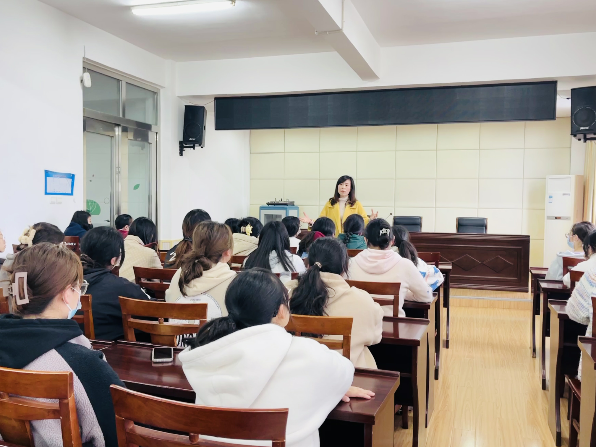 交流会进行到尾声,韦主任强调了幼儿园的安全问题是重中之重,健康问题不容小觑,保教工作和谐开展也是必不可少的。同学们在分享会中畅所欲言,在交流之中相互学习,反思总结,此次活动大家受益匪浅,这也是教育实习的意义所在。
