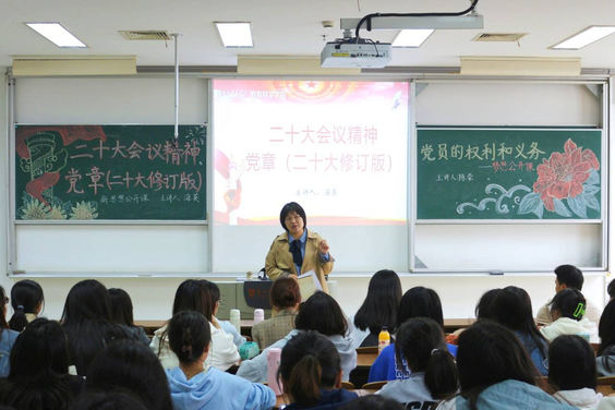 围绕深入学习党的二十大精神,贯彻落实党的二十大各项要求,学工办主任海英深入浅出地帮助入党积极分子掌握党的性质宗旨、义务权利、入党基本条件、党员发展工作流程等基础知识,强调要提高党性修养,端正入党动机,自觉把思想和行动统一到党的二十大精神上来,筑牢思想根基,夯实理论基础,坚定理想信念,以更加积极主动的姿态向党组织靠拢。海英主任结合实际情况,对积极分子们如何增强意识形态认同感、占据网络空间主阵地、筑牢中国共产党思想根基提出了要求。