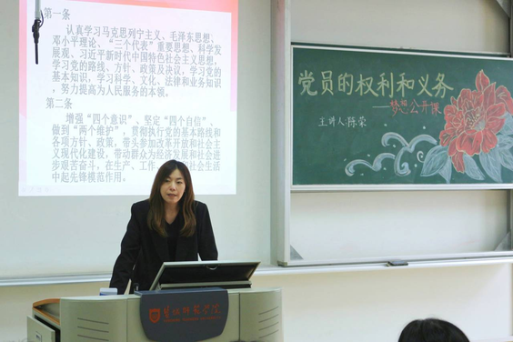 结合最新版党章要点,资深辅导员陈荣详细介绍了党员的权利和义务。陈荣老师指出,党员基本条件、党员的义务和权利为党员发挥积极性、主动性和创造性指明了方向,同时也提出了衡量标准。党章也规定了干部的六个方面基本条件,特别指出,干部要有强烈的革命事业心和政治责任感;要坚持解放思想、实事求是,与时俱进,开拓创新,认真调查研究;要能够把党的方针、政策同本地区、本部门的实际相结合,卓有成效地开展工作,讲实话、办实事、求实效,反对形式主义。陈荣老师强调,入党就是要实现从“先进分子”到“先锋战士”的身份转变,每位入党积极分子都要提高政治站位,充分认清自身政治身份的转变,严格以党员标准要求塑造自己。
