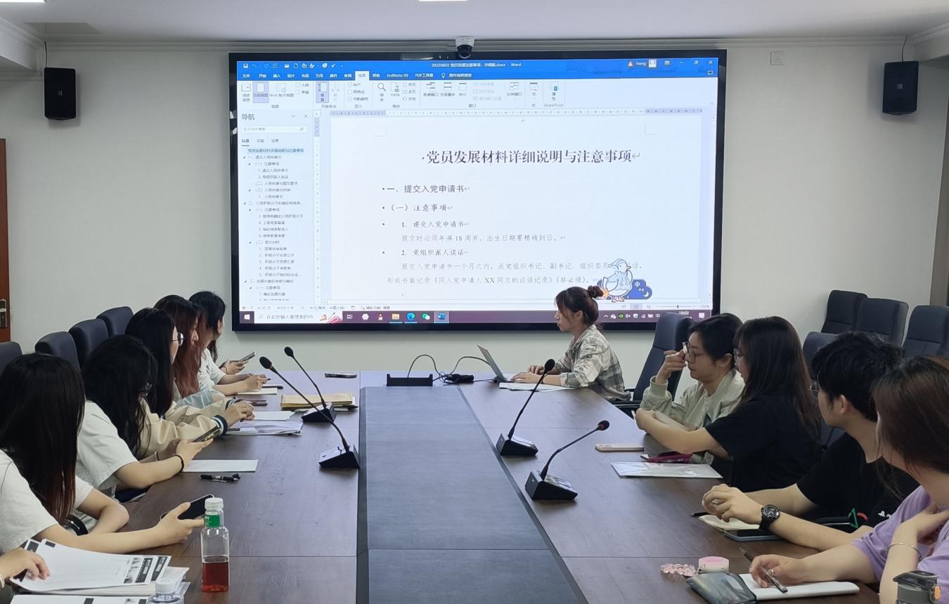 为及时有序做好2023年春学期党员档案审查工作,2023年6月4日上午10:00,beats365唯一官网入口官网在主楼1108会议室开展了2023年春学期党员发展材料审核专题培训会。本次会议由员工第一党支部书记潘虹同志主持,各员工支部负责人参加。