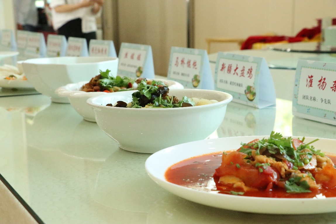 特色美食民族盛宴。在精彩纷呈的演出结束后,10支参赛队精心烹制的12道菜肴也早已呈现在了大家面前静待品尝。这一道道菜肴冲击着现场观众的视觉和味觉,评委们根据参赛菜品的色、香、味依次进行品尝打分,现场气氛十分热烈。最终,评选出此次厨艺大赛的一等奖《苗家酸汤鱼》《马桥馄饨》,二等奖《绝色红烧肉》《新疆大盘鸡》《丝娃娃》《傣味凉拌鸡》,三等奖《淮扬杂烩》《萝卜丝炒牛肉》《肥牛茄汁浴》《三下锅》《哈萨洋芋》《瑶酿》,领导们为获奖队伍颁发了获奖证书。