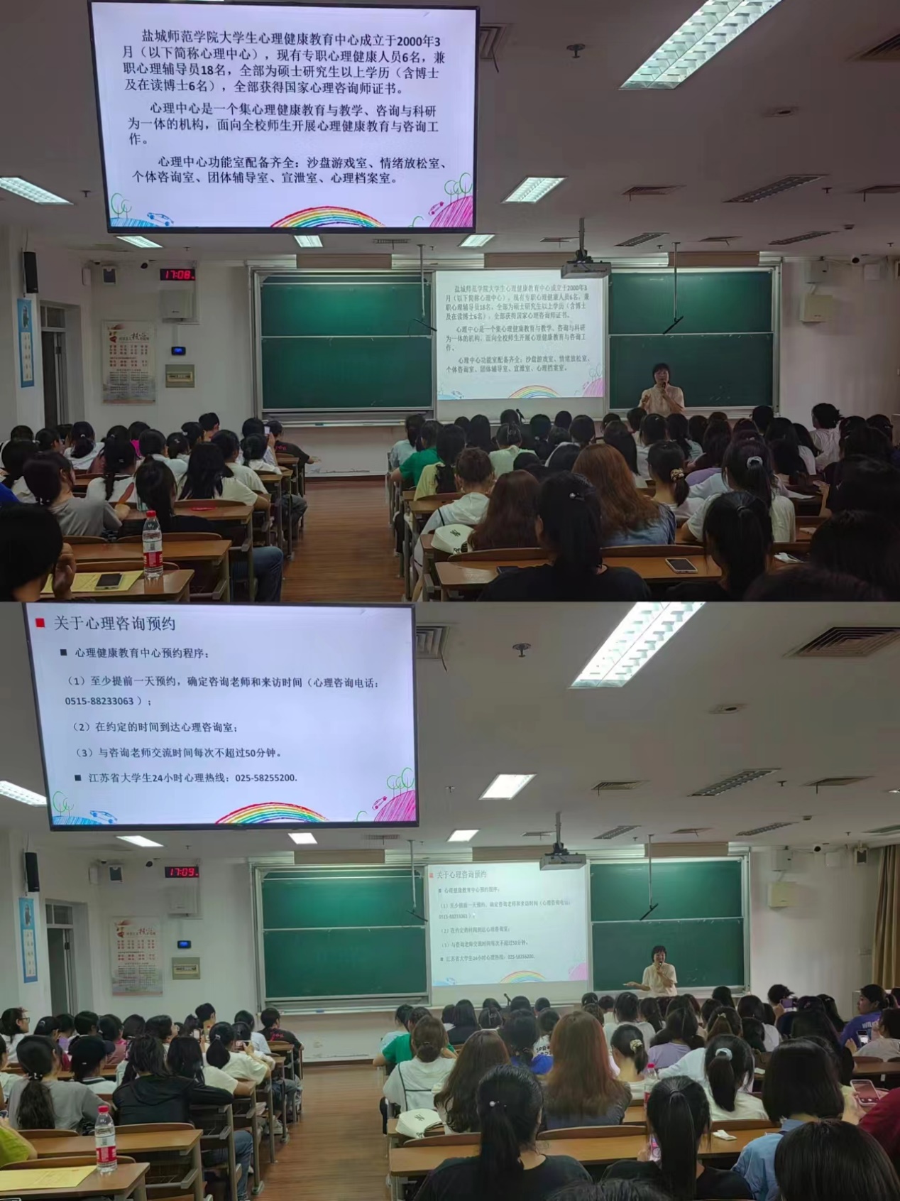最后,海英老师着重向新生推荐了公司心理健康教育中心,呼吁新生积极关注个人心理健康,正确看待心理健康问题,在遇到思想困惑、情绪低落等心理问题时,要及时向辅导员、班主任、校心理健康教育中心求助,以积极、主动的姿态去直面问题、解决问题。