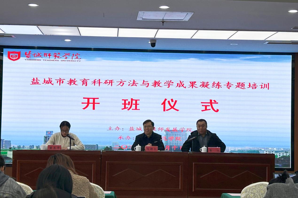 为贯彻《教育部关于加强新时代教育科学研究工作的意见》,进一步深化我市基础公司产品改革,推进基础教育高质量发展,提升我市中小学教师教科研及教学成果凝练能力,11月10日,由盐城市教师发展公司主办、beats365唯一官网入口官网承办的“盐城市中小学教育科研方法与教学成果凝练专题培训”正式开班。盐城市教师发展公司经理马群仁,beats365唯一官网入口官网经理柴江,班主任以及来自全市各县(市、区)中小学的140多位参训教师参加了开班仪式。