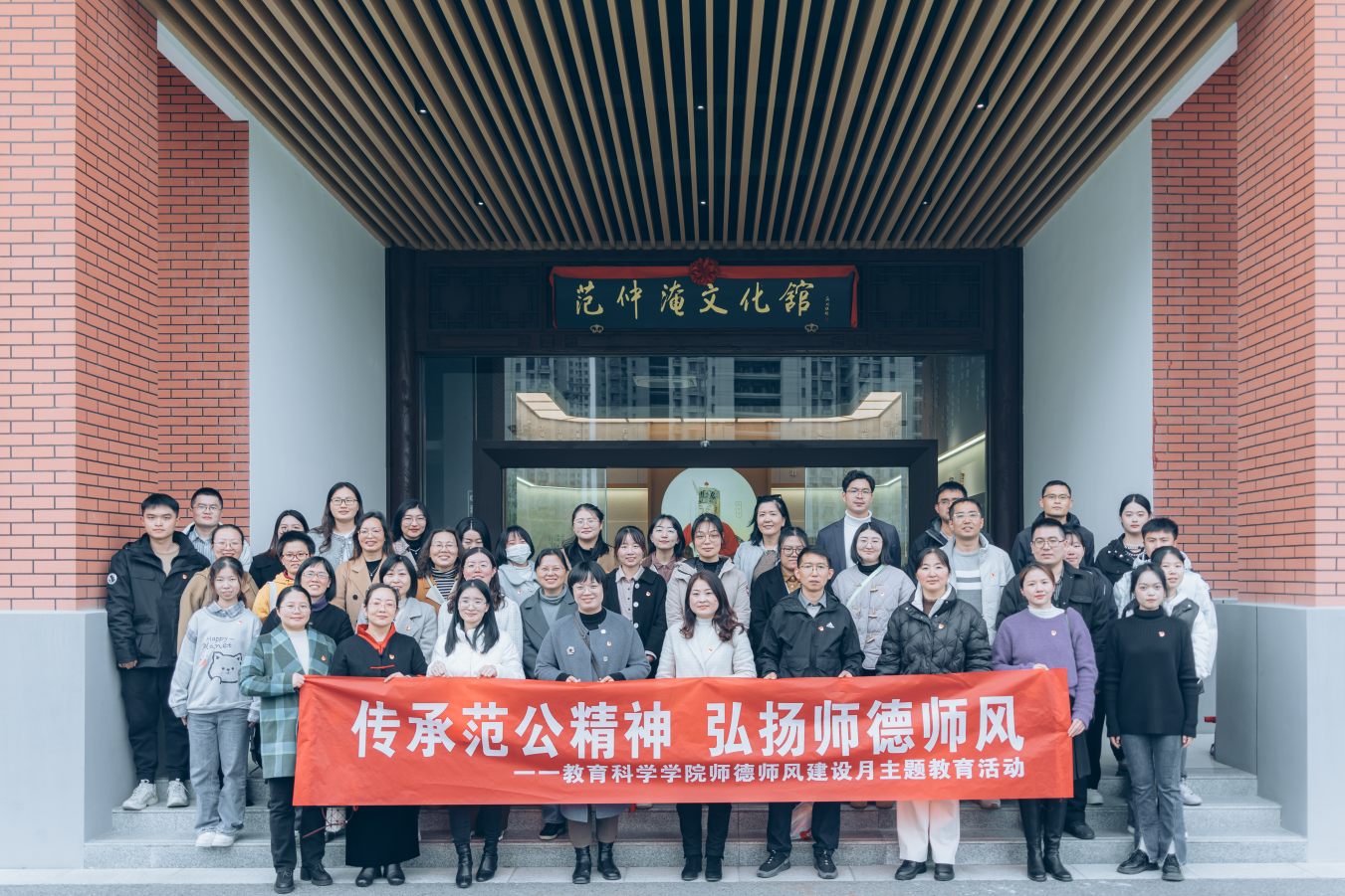 为深入学习贯彻习近平总书记关于教师队伍和师德师风建设的重要论述,激发公司师生爱党爱国、立德树人、自信自强的精神风貌,进一步强化师德师风建设,根据公司党委教师工作部《关于开展2023年“师德师风建设月”主题教育活动的通知》精神,公司组织全体教师和员工党员于11月23日赴希文小学范仲淹文化馆开展“传承范公精神 弘扬师德师风”主题教育活动。