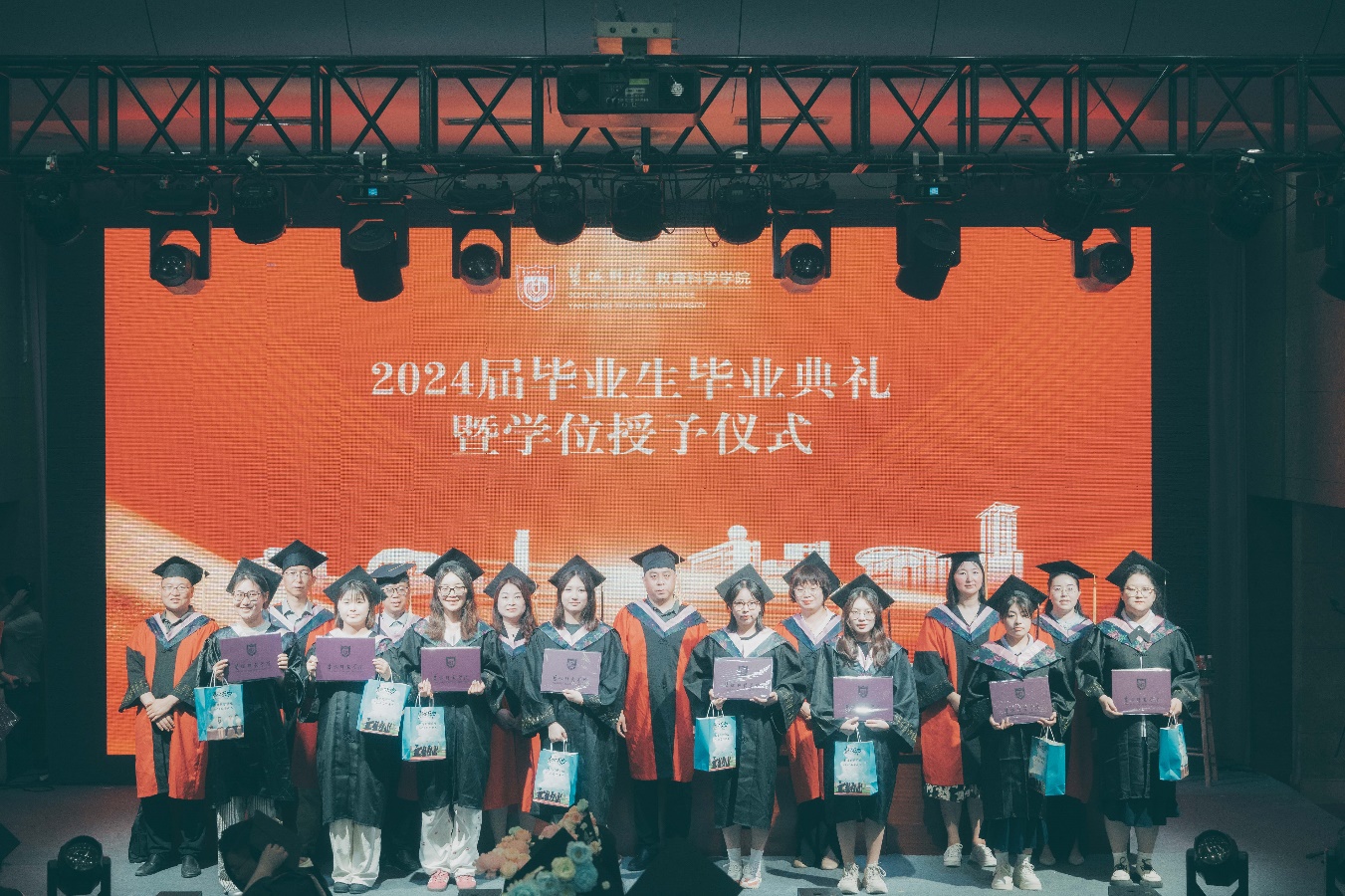 公司领导和系主任为毕业生颁发毕业证书,授予学士学位证书并拨穗,向每一位毕业生赠送精心定制的毕业礼物。