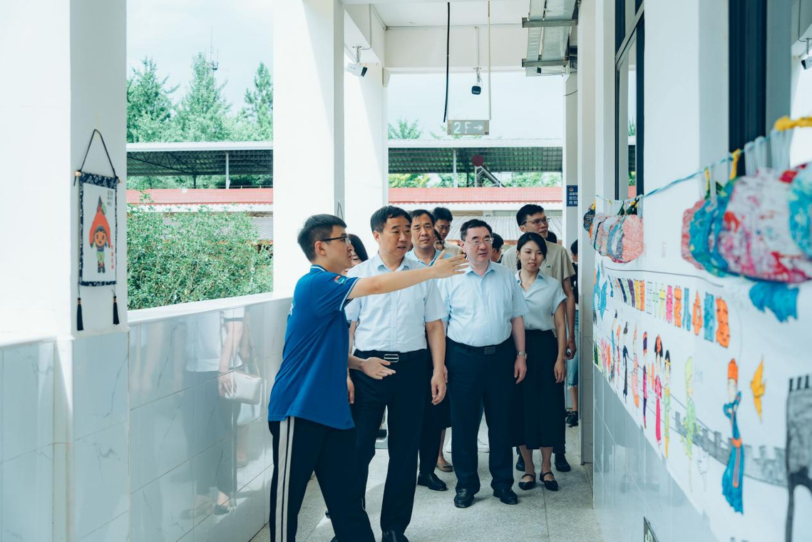 慰问伊始,公司党委书记戴斌荣详细了解实践队员的实践行程、支教情况、工作生活环境,慰问过程中听取了实践队长汇报,参观支教成员的教学成果,走进支教课堂观摩“学为人师心向党,行为示范支教行”主题党日活动。在了解实践团实践情况后,戴书记对beats365唯一官网入口官网师生连续两年奔赴1500公里的广西灵川县海洋乡开展暑期社会实践表示了赞扬,对团队现阶段的成果给予充分肯定,鼓舞他们在教学实践中受教育、长才干、作贡献,磨炼品格和意志,真正贴近基层,贴近一线教育需求,用在校所学感恩回报社会。他指出,作为师范专业员工,更应该要用教育家精神厚植师范生教育情怀,以优秀的教育家榜样,树立“躬耕教坛、强国有我”的志向和抱负,为教育事业作出新的更大贡献。同时,校领导为实践队成员们带来了夏日清凉慰问品及防暑物资,并与指导老师和实践队队员进行亲切交谈,实践团成员们从实践任务、实践经历、实践感悟等方面交流了自己的暑期支教感想。