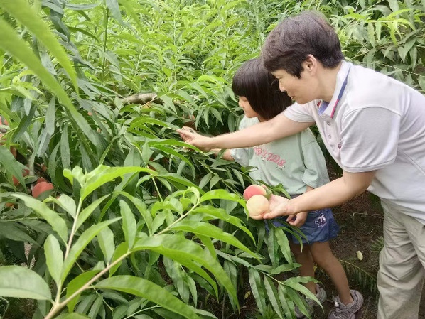 为亲身感受科技在农业领域的应用,了解现代农业的发展现状,教科学子于江苏省泰兴市古溪镇周庄村桃园进行社会实践。教科学子带领孩子们享果园采摘之趣,孩子们在智慧农业的引领下,踏入果园,亲手采摘科技培育的饱满桃子,体验现代农业的奇妙与劳动的乐趣。