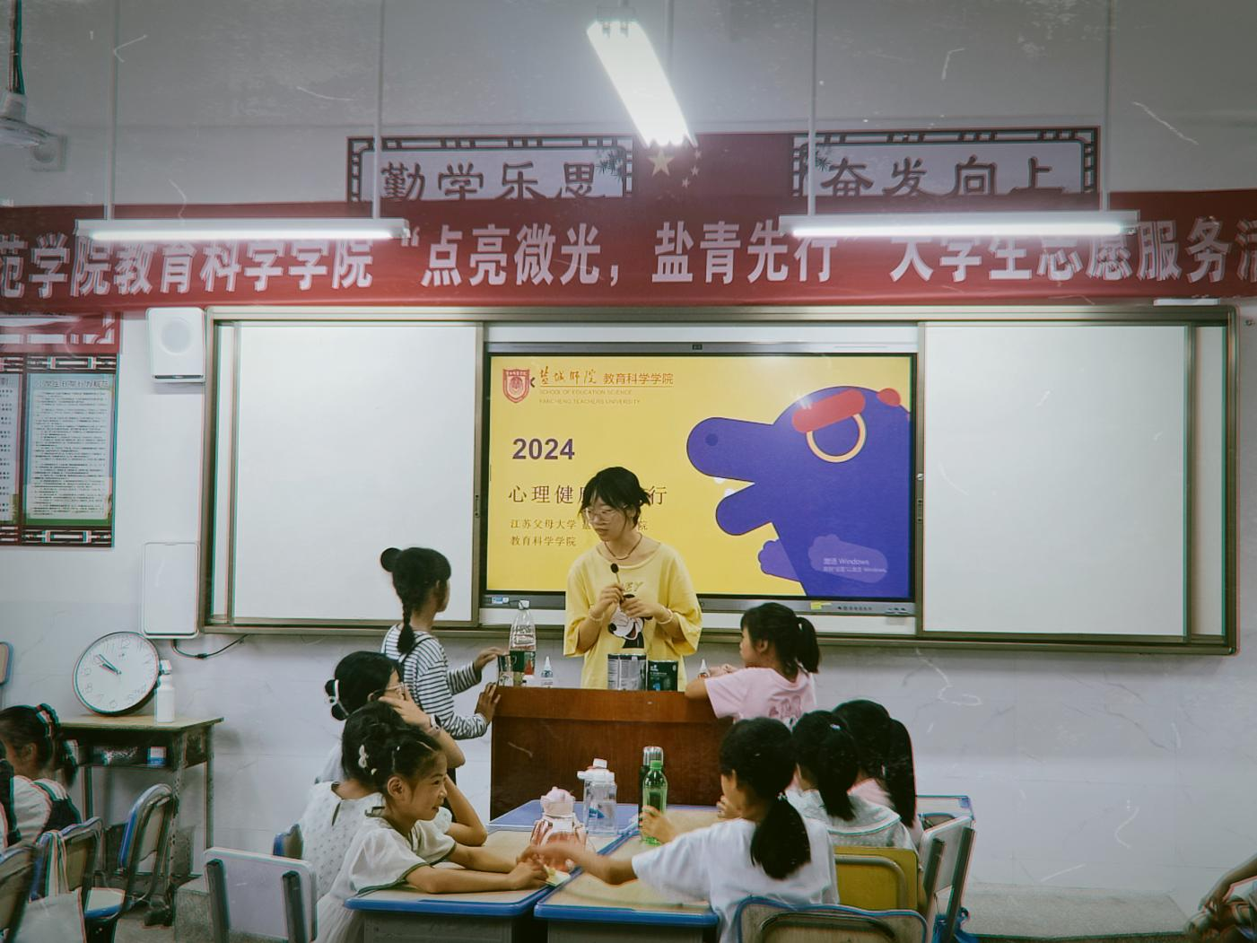 在教室内,“桃花朵朵开”“情绪秀场”“夸夸我自己”等一个个小游戏轮番登场。“因为孩子们来自公司的六个年级,大家并不是十分熟悉,通过说说自己的优点,找到与自己有共同点的人,让孩子们在游戏中互相熟悉,增强自信。”来自桂林的22级应用心理学专业228班的翟晓歆说。