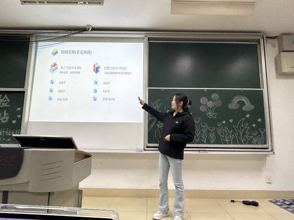 紧接着,管心璐学姐和同学们分享了在盐城市串场河小学的实习经历,从时间安排、实习内容到实习阶段,向同学们具体介绍了在校工作情况,并且分享了实习工作的专业建议。同学们也更加清晰认识到教师的实际教学安排和体验,对自己的职业道路做出更加深刻的思考。