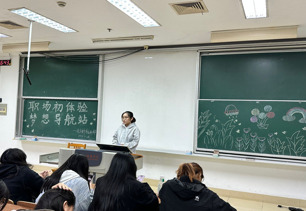 最后,韦恬恬学姐分享了在小学和初中进行心理辅导课程的实习感悟和自己的职业规划路径,让同学们更加全面地了解到工作实际情况,为职场初体验做好准备。