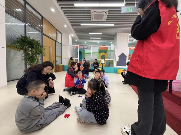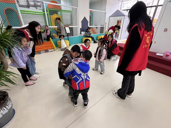 在“志愿游戏,点亮孩子欢乐时光”的主题下,志愿者们巧妙地以“粘泡泡糖”这一趣味游戏作为开场,迅速拉近了与孩子们的距离。起初,孩子们害羞腼腆,但在志愿者们亲切的指引中,他们放下了拘谨,积极参与到活动中来。随后,孩子们参与了“猜书名”、“头顶书”等趣味读书活动,志愿者们以乐教乐,引导孩子们树立正确的世界观、人生观和价值观。
