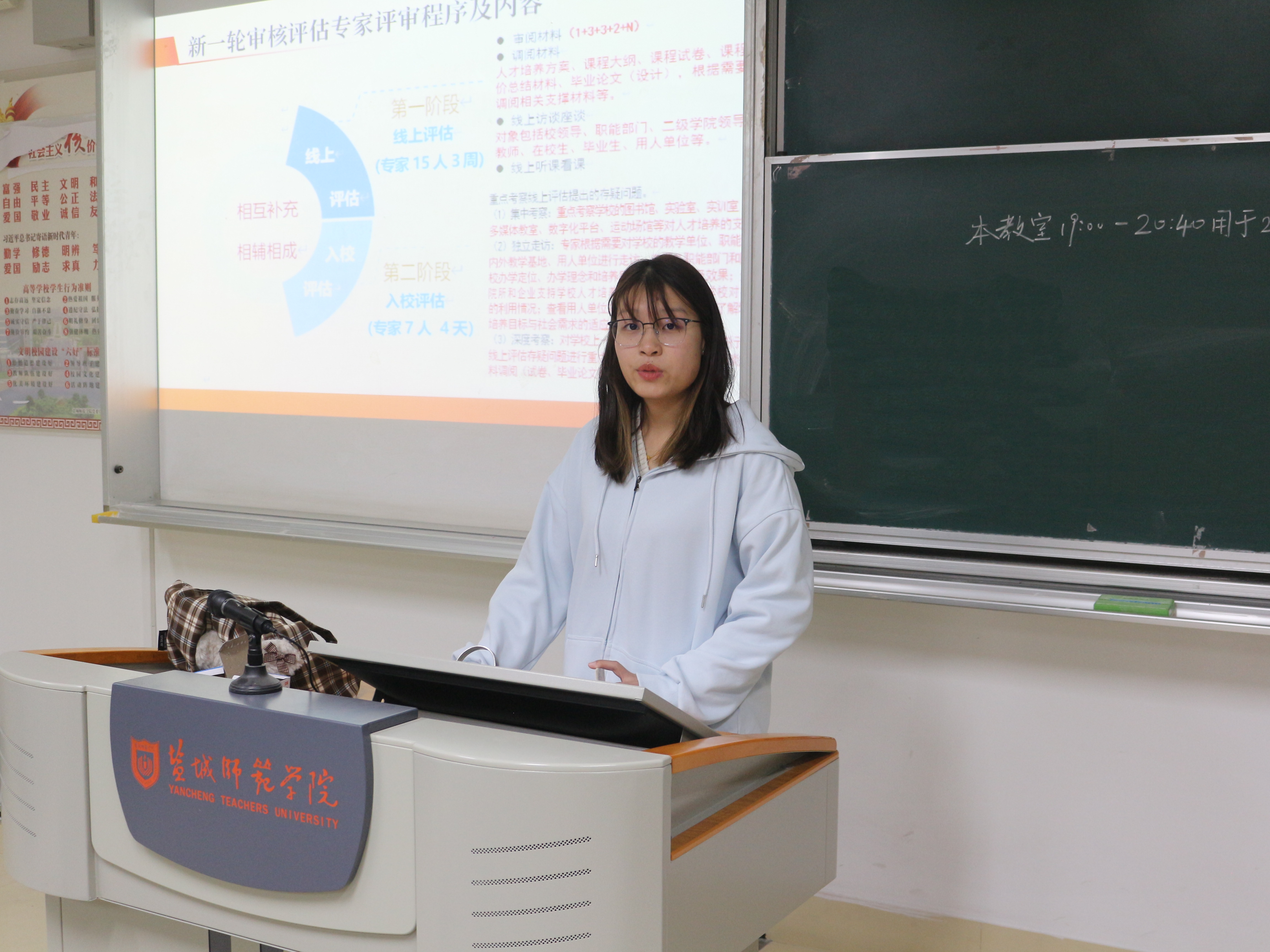 为进一步加强优良学风建设,迎接本科公司产品审核性评估,切实发挥“一站式”员工社区在创建优良学风过程中的阵地功效。近日,beats365唯一官网入口官网以学风建设月活动为依托,组织公司“盐青先行”宣讲团深入各班级开展“榜样在我身边”与“审核评估我知晓,应知应会我先行”双主题宣讲活动,覆盖员工 900 余人次。