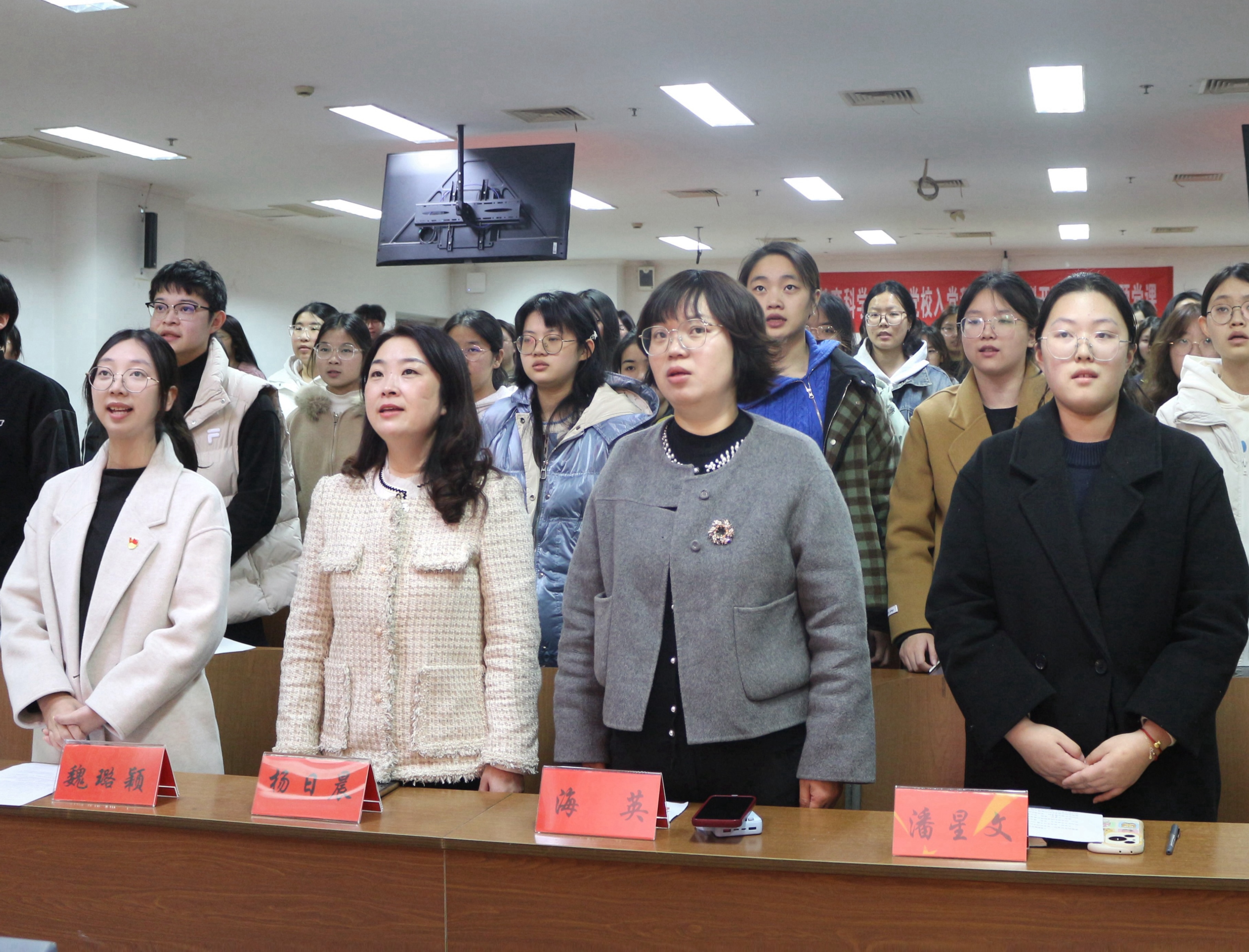 教22(4)班魏璐颖作为员工党员代表发言。她鼓励入党积极分子要始终保持敢想敢干、敢闯敢试的精神状态和逢山开路、遇水架桥的奋斗姿态,牢记一字一句写下的申请誓言,主动扛起青年的责任担当。教24(3)班潘星文代表全体学员庄严承诺,未来将时刻鞭策自己学知识、长本领、修品德,在推进强国建设、民族复兴伟业中展现青春作为、彰显青春风采、贡献青春力量。