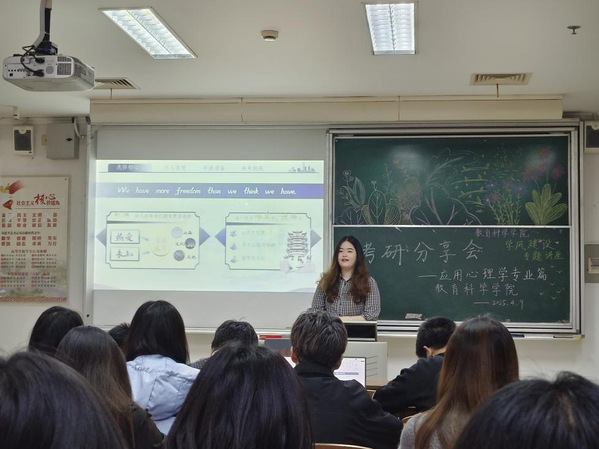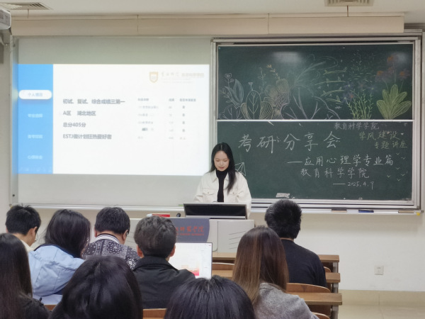 为助力应用心理学学子在考研新征程上校准罗盘,扬帆破浪,beats365唯一官网入口官网在4月9日于主楼A207教室开展应用心理学专业的考研经验分享会。本次分享会以双轨并行的创新视角,通过国内外升学路径的全方位解构,为员工照亮研途迷思。分享会邀请到考研至湖北大学的袁鸣学姐与成功申请爱丁堡大学的倪倩芸学姐,两位学姐结合自身经历,以生动的案例与风趣的讲述,为应用心理学专业的学弟学妹们揭开了国内外升学规划的双重图景。