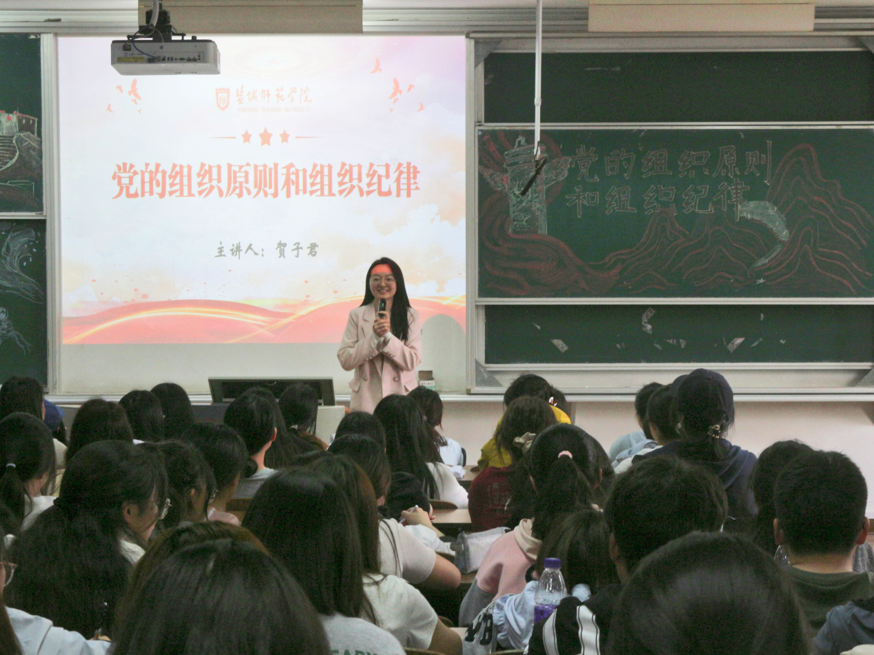 贺子君强调了党的组织原则和组织纪律对于党的建设和发展的重要性。她指出,民主集中制是我们党的根本组织原则和领导制度,贯穿于党的建设的各个方面。坚持民主集中制,是马克思主义政党区别于其他政党的重要标志,是群众路线在党的生活中的运用,也是我们党始终维护团结统一、作出科学决策、凝聚前进力量的制胜法宝。她强调,每一位入党积极分子都要深入学习《中国共产党纪律处分条例》,既要知其然,更要知其所以然,才能做到学纪、知纪、明纪、守纪,进一步强化纪律意识、加强自我约束、提高免疫能力。