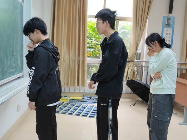 活动的第一个环节是找小球,由主持人引领大家来到指定地点寻找小球位置。各小组依次前往校园指定草坪区域,按照提示寻找预先藏匿的小球。率先完成任务的小组返回教室,与工作人员对接后,进入下一环节准备。