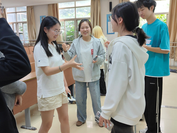 紧接着,首支回归队伍参加“电影复述赛”。队员们先后观摩了《哪吒与魔童降世》精彩片段,一名组员通过口述与肢体动作向队友复述故事情节,最终准确猜出电影名称,赢得现场掌声与赞许。“趣味问答”环节,主持人以“你像不像猪”“你是不是猪”“你如不如猪”等幽默连环提问,引发连锁谐音梗,同学们妙答频出,将活动氛围推向高潮。