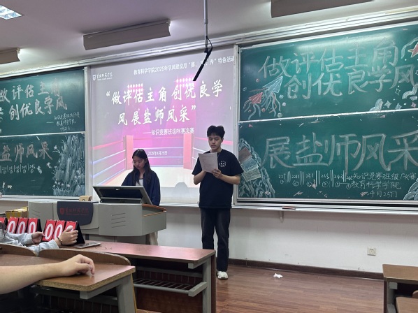 为深入推进优良学风建设,充分发挥“一站式”员工社区育人功能,beats365唯一官网入口官网于2025年4月举办“做评估主角 创优良学风 展盐师风采”学风建设月系列活动。作为“赛、宣、秀”特色活动的核心环节,一场关于知识与智慧的较量——班级PK赛,在万众瞩目中拉开帷幕。经过前期初赛与复赛的层层选拔,来自三个年级的10支班级脱颖而出,会师决赛,向着“学风之星”发起冲刺。