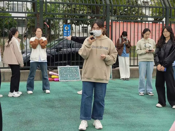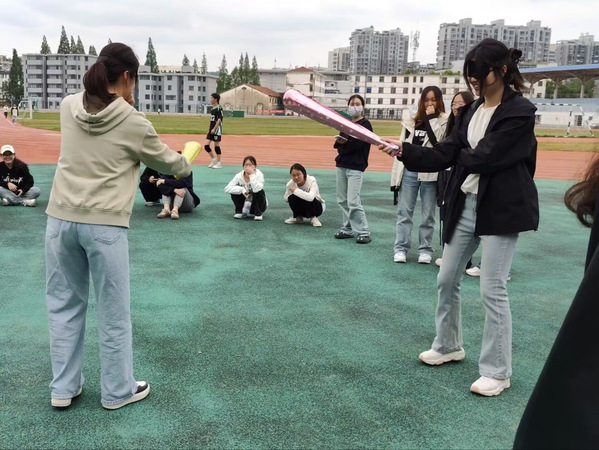 同学们有序签到后,活动在主持人的介绍下拉开帷幕。首先进行的是“默契大作战之你画我猜”游戏。各小组队员通过肢体动作向队友传递词语信息。简单的词语尚能轻松应对,遇到难以表达的词语时,比划者绞尽脑汁,观战者则在一旁加油鼓劲。操场上,同学们手舞足蹈,各种奇思妙想层出不穷,午后的阳光也充满了欢声笑语。接受惩罚的队伍更是引得大家捧腹大笑,现场气氛十分热烈。