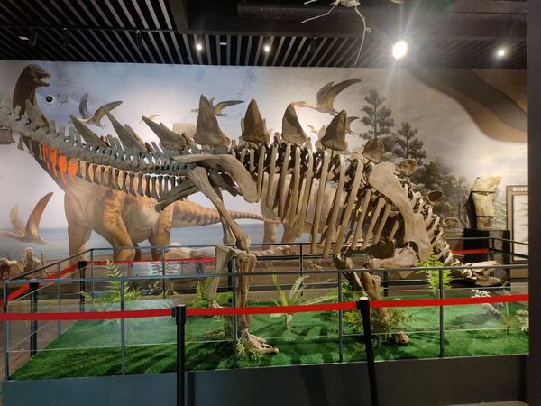 哈密市博物馆凭借独特建筑风格与丰富展品,给大家留下了深刻印象。博物馆分两部分,其一以非物质文化遗产为主题,展示哈密饮食、舞蹈及哈密瓜文化。哈密瓜作为重要农产品,其种植历史、品种特点及与当地生活的紧密联系在展览中生动呈现。另一部分以“飞向白垩纪”为主题,展出大量翼龙化石、古生物化石和恐龙模型,凸显哈密独特地质历史与古生物资源。