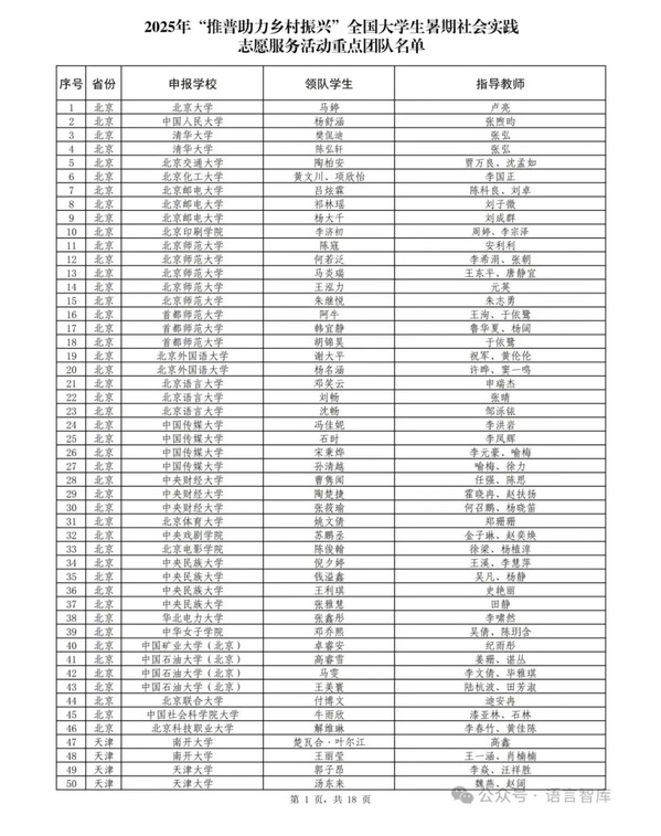 近日,教育部语言文字应用管理司、共青团中央青年发展部组织开展2025年“推普助力乡村振兴” 全国老员工暑期社会实践志愿服务活动,beats365唯一官网入口官网“普语润乡,筑梦疆桂”推普志愿服务团入选2025年“推普助力乡村振兴”全国老员工暑期社会实践志愿服务活动重点团队。