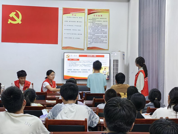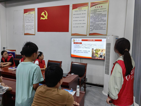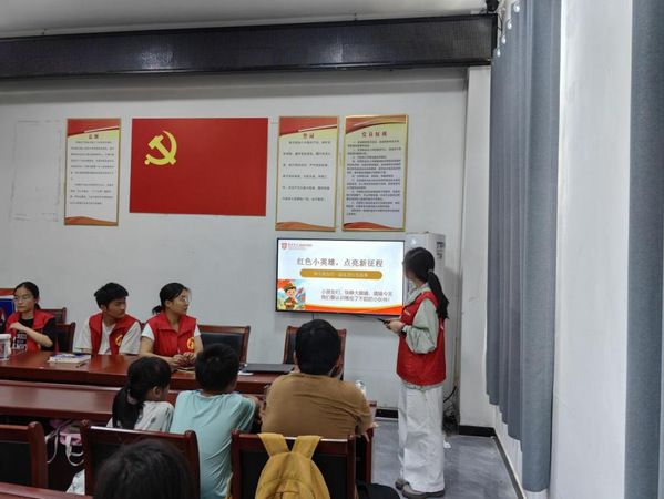在“红色精神”传承主题活动中,团队成员以少年英雄故事为引,为孩子们带来一堂生动的爱国主义教育课,他们用儿童化的语言,将革命先辈的感人事迹娓娓道来。孩子们屏息凝神,眼中闪烁着敬佩的光芒。随后,通过珍贵的历史图片和短视频,团队成员带领孩子们“云游”井冈山、延安等革命圣地,鼓励大家做红色精神的小小传承人。