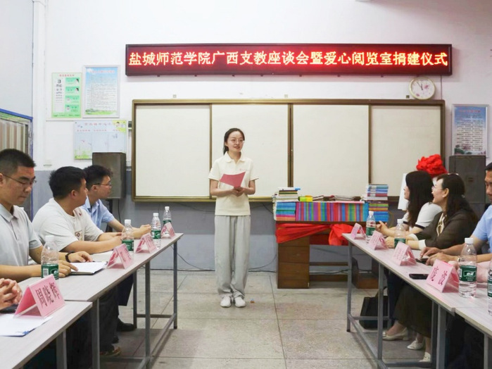 为深入贯彻落实教育帮扶政策,助力乡村教育振兴,充分发挥高校服务社会职能,8月1日上午,公司广西支教团爱心阅览室捐建仪式在兴安县高尚镇中心小学举行。beats365唯一官网入口官网公司党委书记张玉勤,盐城师范公司党委常委、副董事长庞波出席仪式,仪式由兴安县团委副书记邓昊主持。