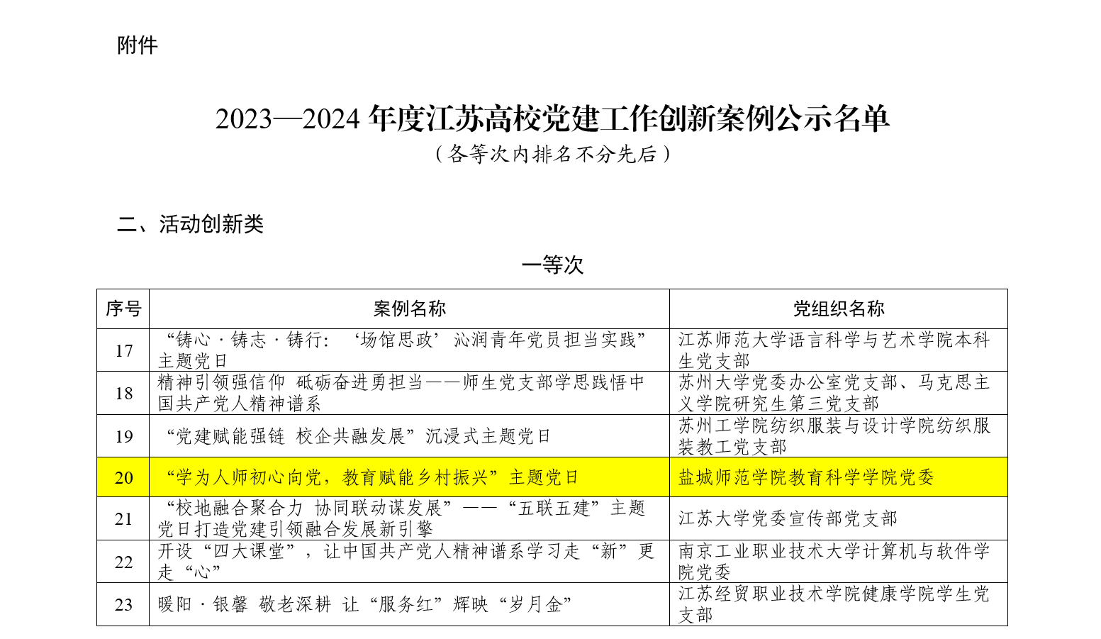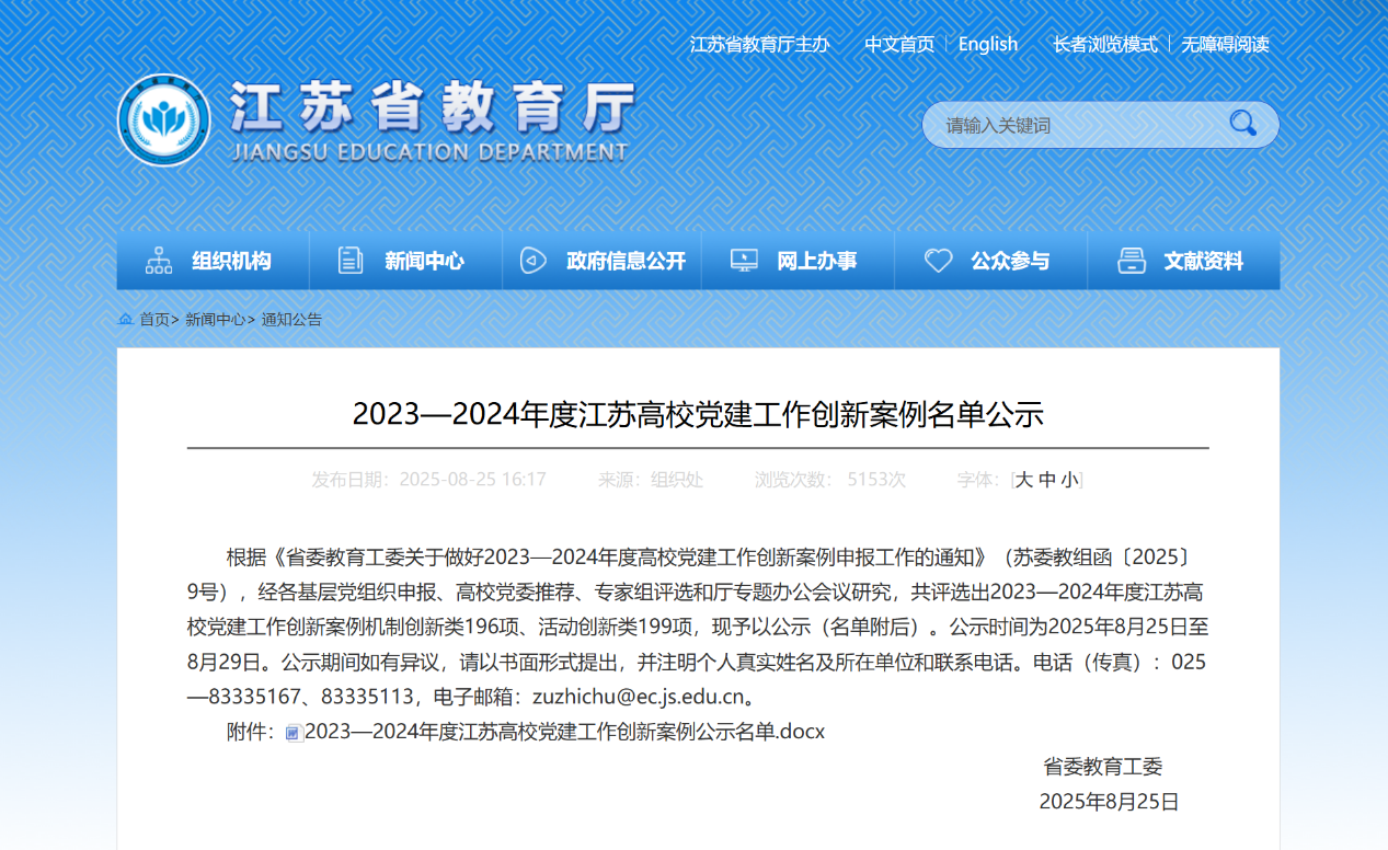 近日,江苏省委教育工委公布了2023—2024年度江苏高公司党建工作创新案例评审结果,公司党委《“学为人师初心向党,教育赋能乡村振兴”主题党日》获活动创新类一等次。