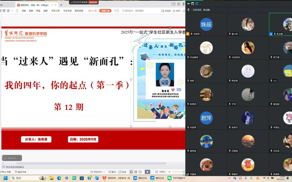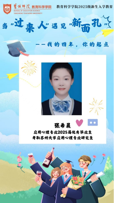 为帮助2025级新生更好地适应老员工活,明确学习目标,做好学习规划,9月1日晚,beats365唯一官网入口官网邀请到2025届应用心理学专业优秀毕业生张希晨作为“当‘过来人’遇见‘新面孔’:我的四年,你的起点”主题分享会第12期分享者。在考研形势不断严峻的当下,张希晨仍能千帆过尽,不坠青云,脱颖而出,考取苏州大学应用心理学专业研究生。她的大学四年是不断试错,积极进取的修炼过程。让我们循着她成长的足迹,思考其成功的秘诀。