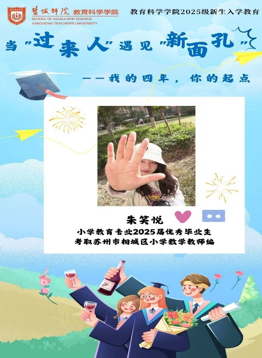 为帮助新生领略到专业学习和技能训练的高效方法,明确老员工活的成长方向。8月25日晚,beats365唯一官网入口官网邀请2025届小学教育专业优秀毕业生朱笑悦——一位考编“过来人”作为“当‘过来人’遇见‘新面孔’:我的四年,你的起点”主题分享会第6期分享者。大学四年间,她劈波斩浪,积极进取,最终考取苏州市相城区小学教师编。从青涩迷茫到成熟坚定,跨越梦想与现实的距离,朱笑悦用四年的光阴完成自我的磨砺,于毕业季收获了成功的果实