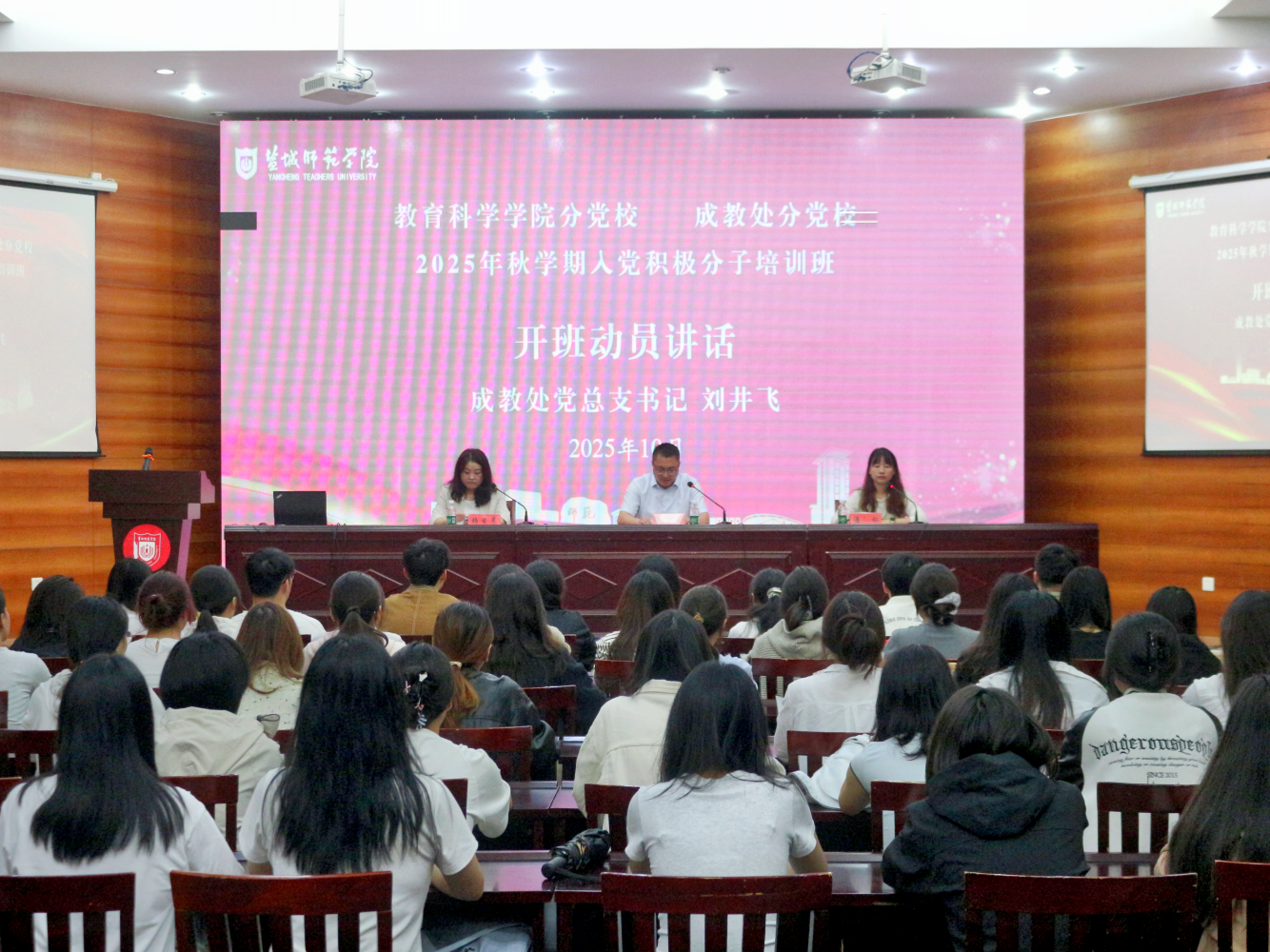10月15日下午3点,公司党委在国培报告厅开展了2025年秋学期入党积极分子培训班开班仪式暨首场主题党课活动。成教处党总支书记刘井飞、公司党委书记杨日晨、员工代表和培训班全体学员参加仪式。开班仪式由公司组织员潘虹主持。