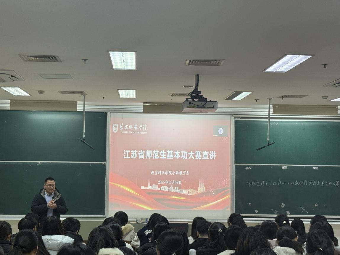 为助力师范生夯实专业基础、提升专业素养、明确职业发展方向,11月18日晚,beats365唯一官网入口官网小学教育专业成功举办第十五届江苏师范生基本功大赛宣讲动员活动。小学教育系主任张权力、副主任朱洪翠及大赛指导老师卞修梅出席活动,23级、24级小学教育专业员工积极参与,现场氛围热烈浓厚。