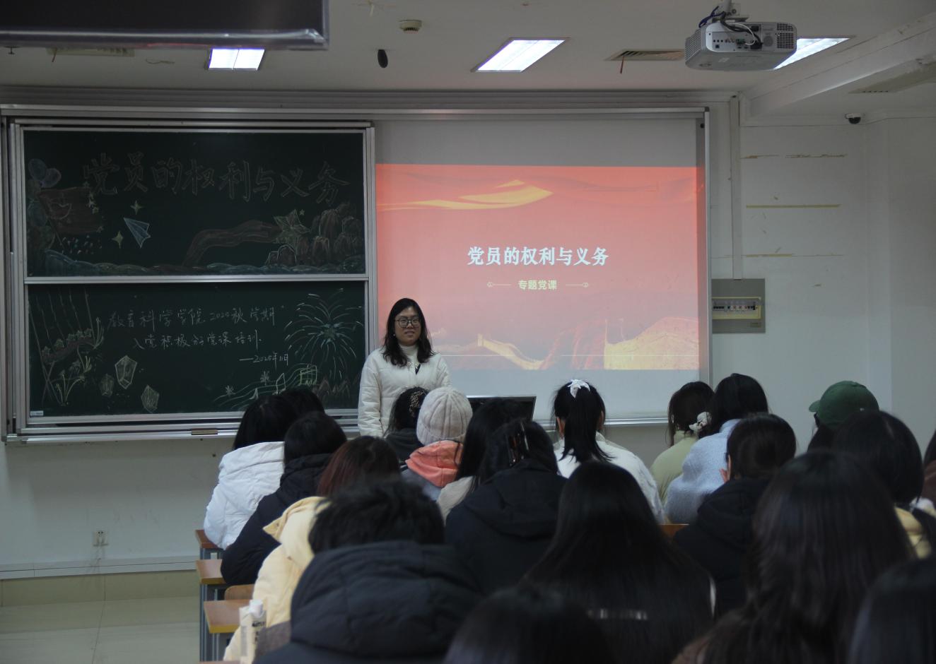 张钰以《中国共产党章程》为根本遵循,紧扣“权利与义务辩证统一”这一主线,结合新时代党的建设总要求,系统阐述了党员义务与权利的深刻内涵与实践逻辑。她指出,入党积极分子作为党的后备力量,必须牢固树立责任意识、宗旨意识和权利意识,做到正确行使权利、自觉履行义务,在知行合一中筑牢党性根基。